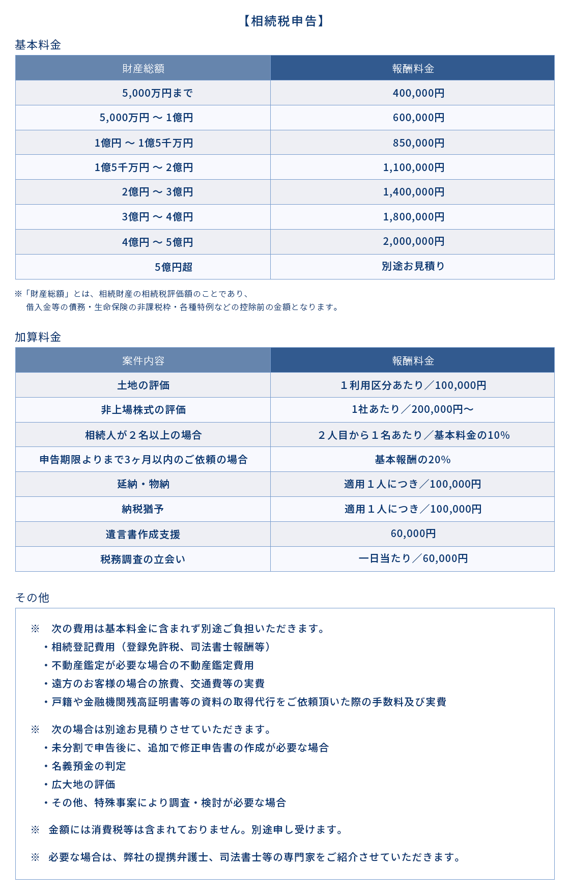 税務顧問・法人設立・相続税申告など、