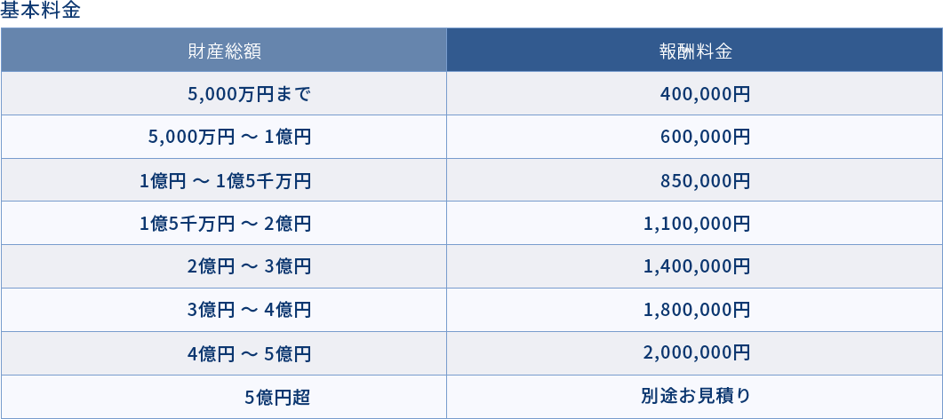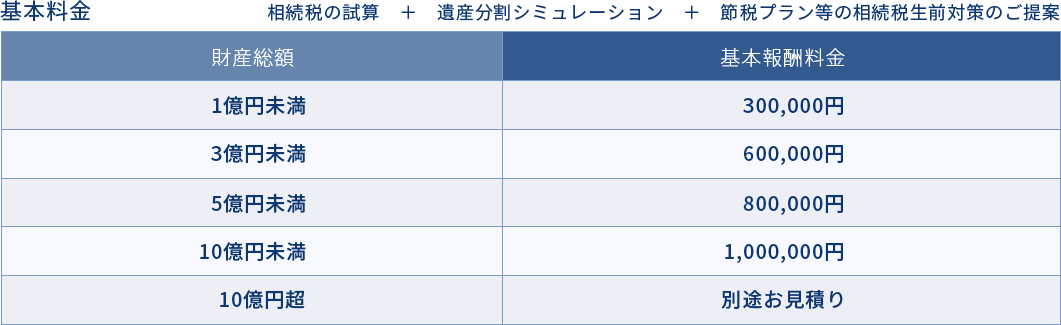 - 「財産総額」とは、相続財産の相続税評価額のことであり、 借入金等の債務・生命保険の非課税枠・各種特例などの控除前の金額となります。