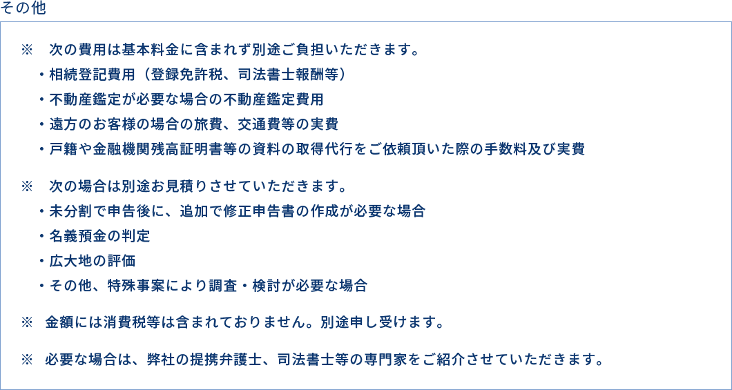 各種届出書作成等については別途報酬が
