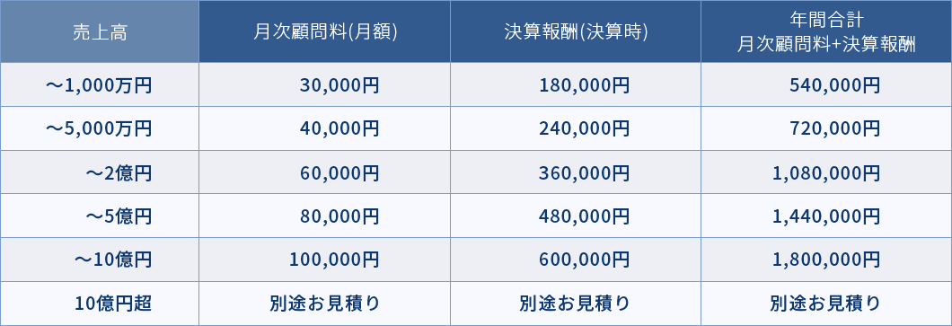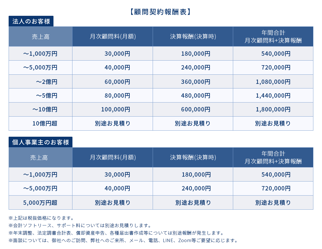 【顧問契約報酬表】